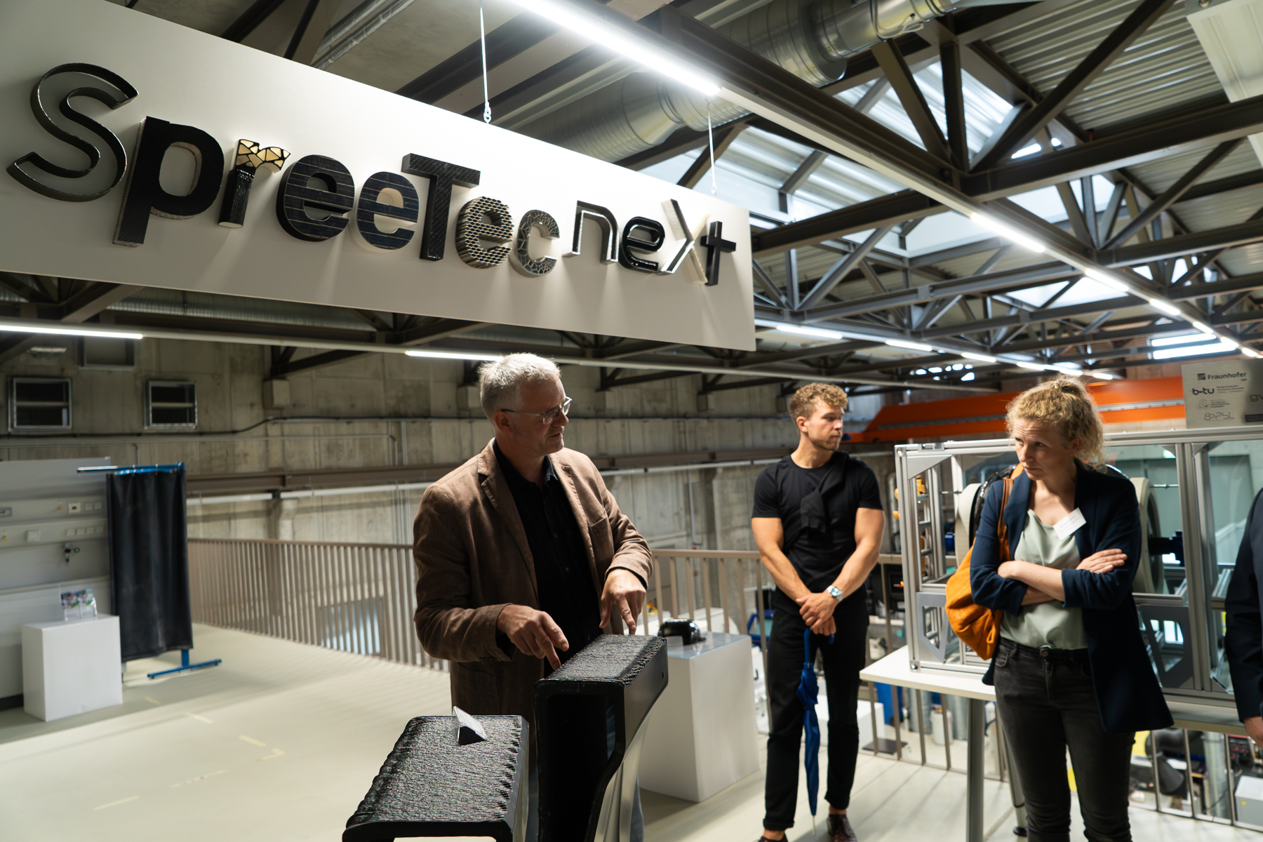 Die diesjährige Cross Cluster Konferenz Nachhaltige Produktion widmete sich dem Thema der Ressourceneffizienz und seines Potenzials für die brandenburgische Unternehmerschaft. Der thematische Fokus liegt dabei auf Effizienzsteigerung in den Produktionsprozessen: von Automatisierung, Ressourceneinsparung durch Leichtbautechnologien bis hin zu Digitalisierung und Einsatz von Künstliche Intelligenz. Als wissenschaftlicher Partner der Veranstaltung öffnete die Brandenburgisch Technische Universität Cottbus - Senftenberg im Rahmen der Innovationstouren Ihre Türen.