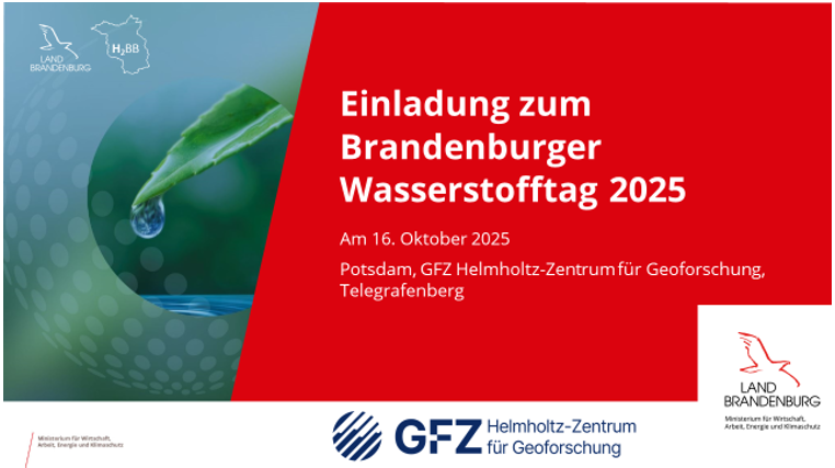 Das Ministerium für Wirtschaft, Arbeit, Energie und Klimaschutz des Landes Brandenburg und das GFZ Helmholtz-Zentrum für Geoforschung laden Sie herzlich zum Brandenburger Wasserstofftag 2025 ein!